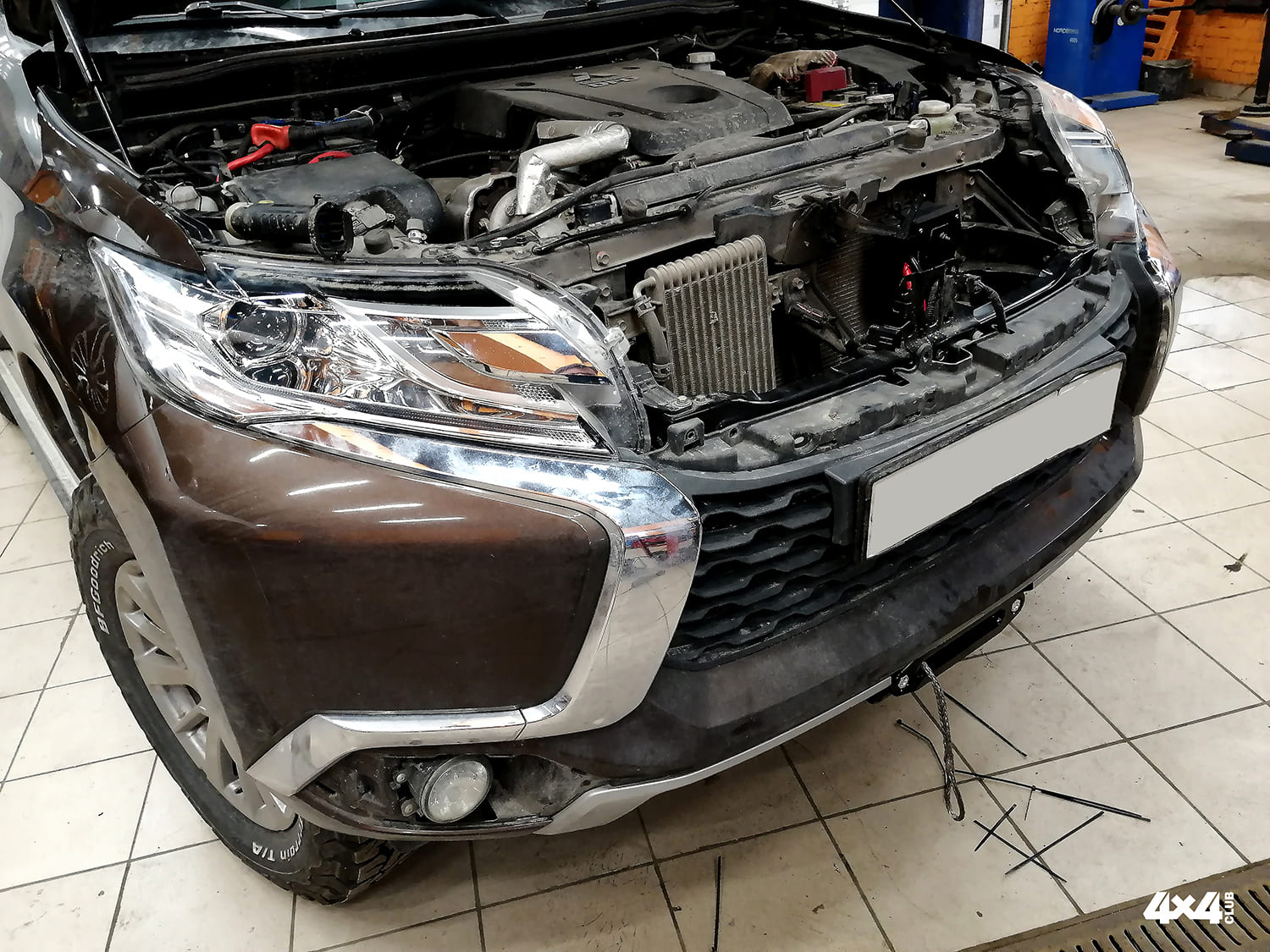 Тюнинг-центром «Клуб 4х4» произведены работы по установке на Mitsubishi Pajero Sport скрытой лебедки Master Winch A9500 и усиленной подвески Ironman 1.5”.